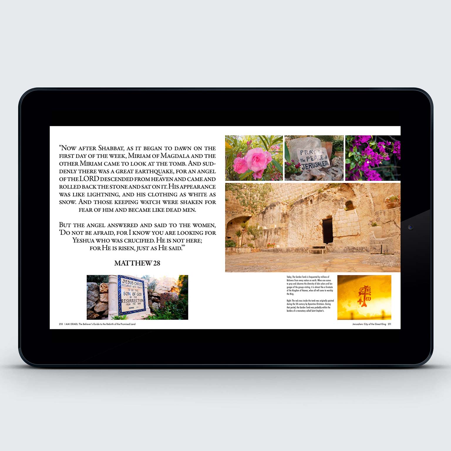 Showcasing over 550 stunning photographs, illustrated maps and powerful stories, I AM ISRAEL: The Believer's Guide to the Rebirth of the Promised Land will take you on a visual journey through the Land of the Bible and unveil the inspiring story of Israel in a way that will make your spirit soar!