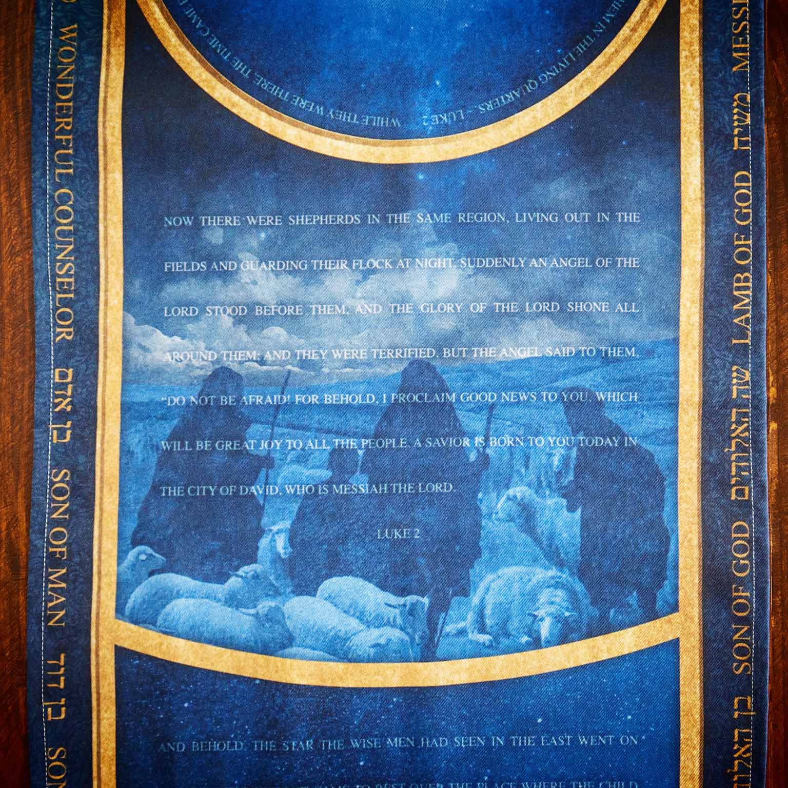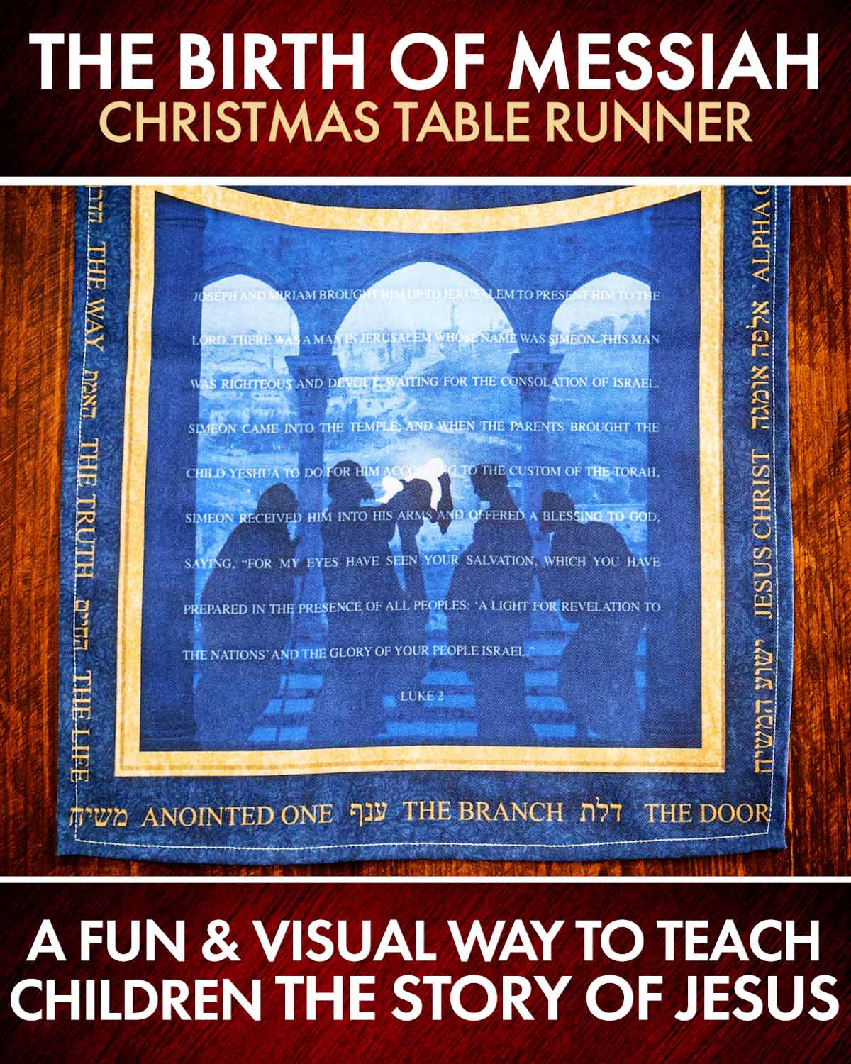 • From Isaiah's prophecy of the Coming King, to His birth in Bethlehem, to His dedication at the Temple in Jerusalem, this gorgeous table runner tells the story of the birth of Jesus through scripture and beautiful images.