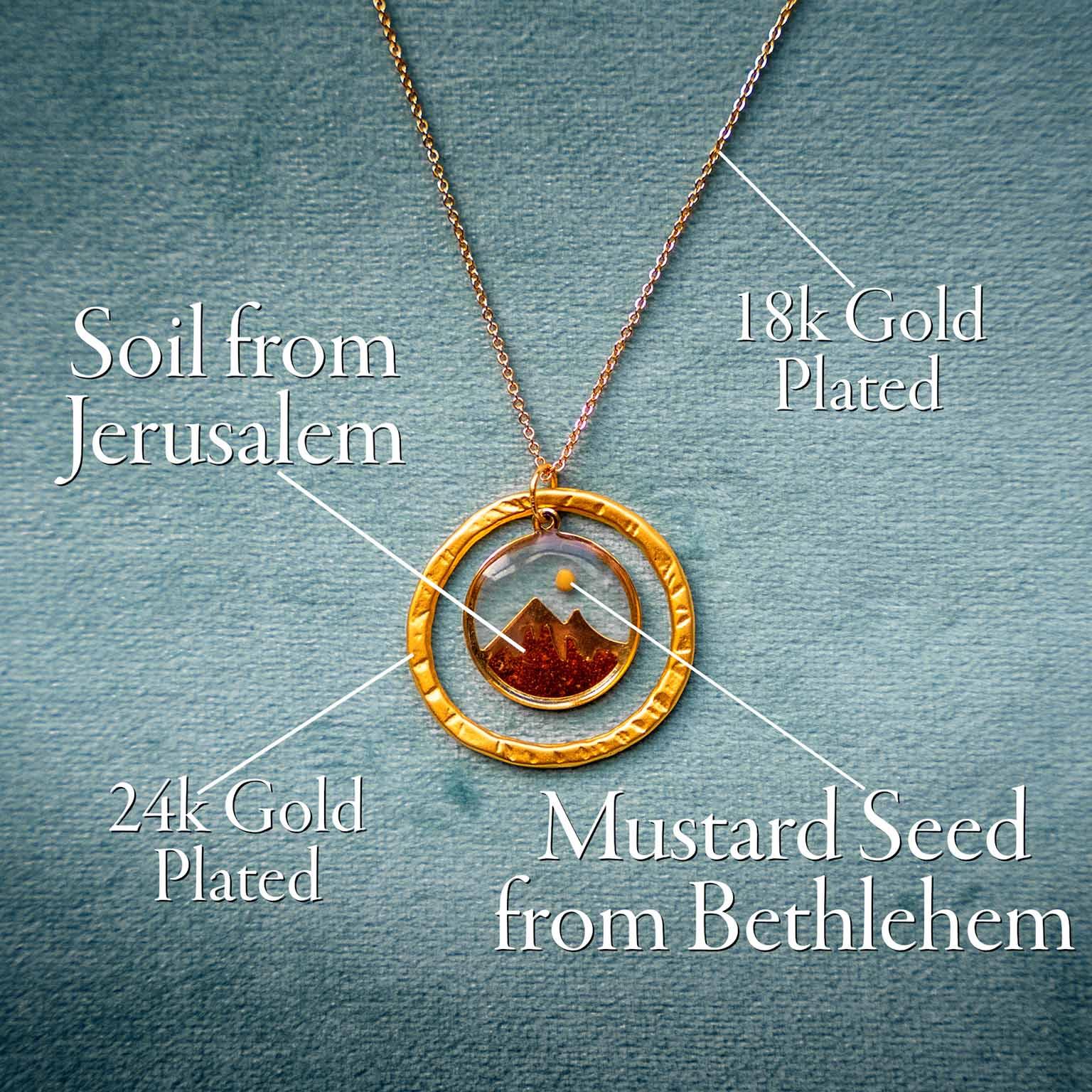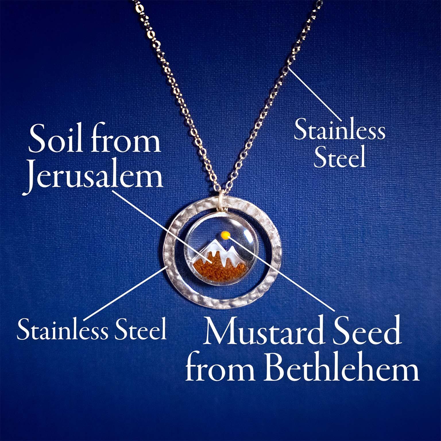 Our "Faith Like A Mustard Seed" Necklace and Earrings Sets, designed especially for women of faith, contain soil from the Mountains of Jerusalem, the beautiful city where Messiah will one day set His feet again.