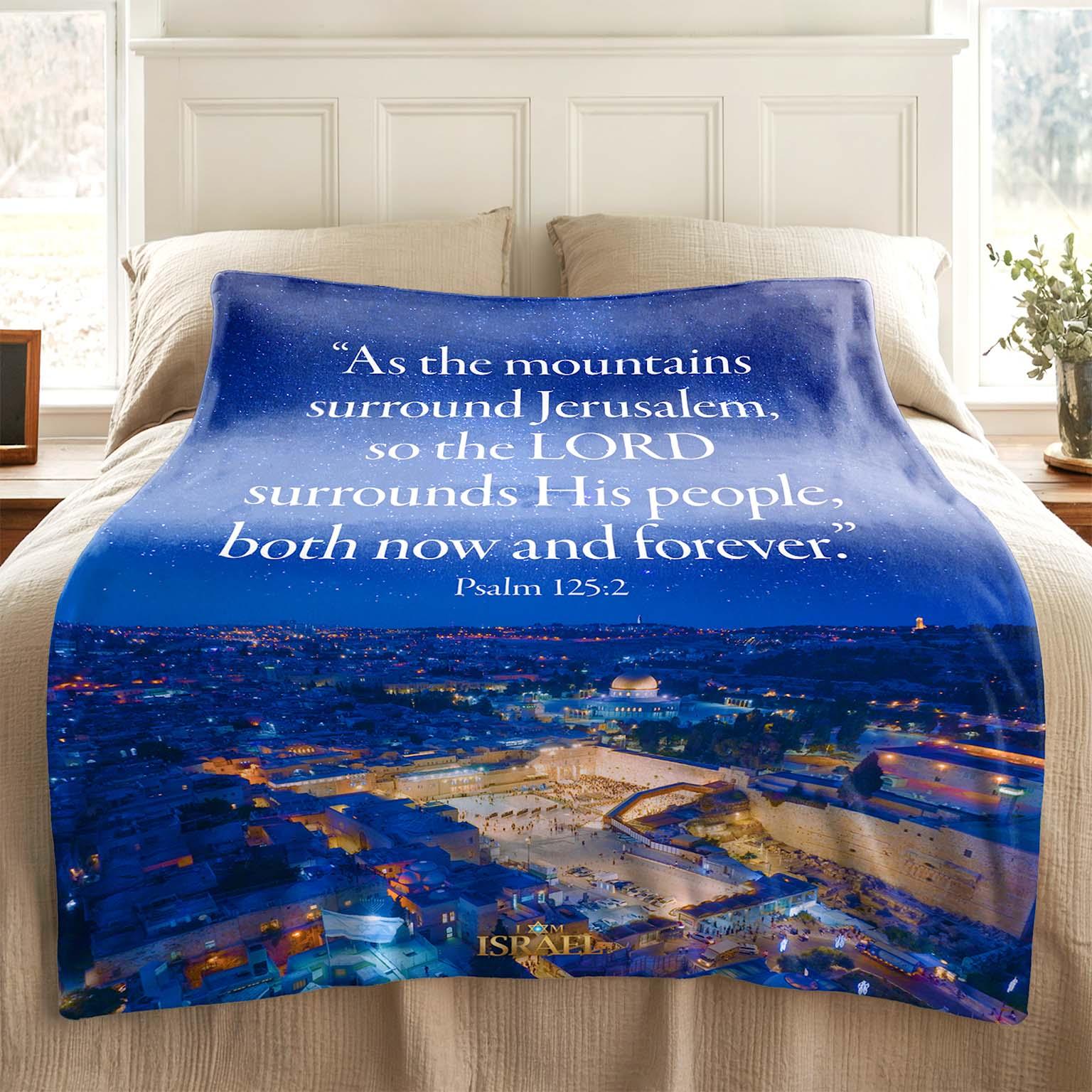 “Psalm 125” The LORD Surrounds His People, Jerusalem Starry Sky – Luxuriously Soft Sherpa Blanket