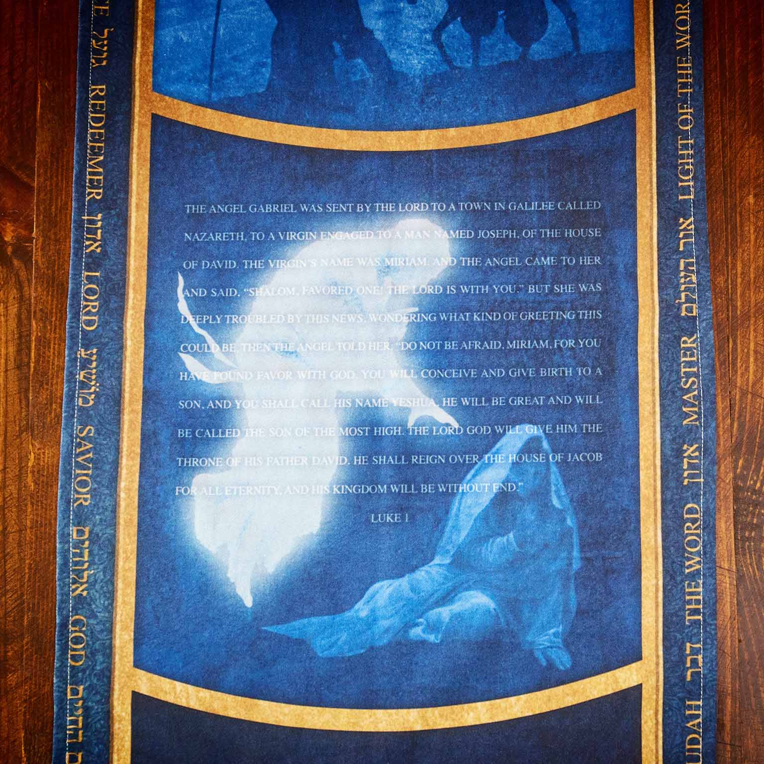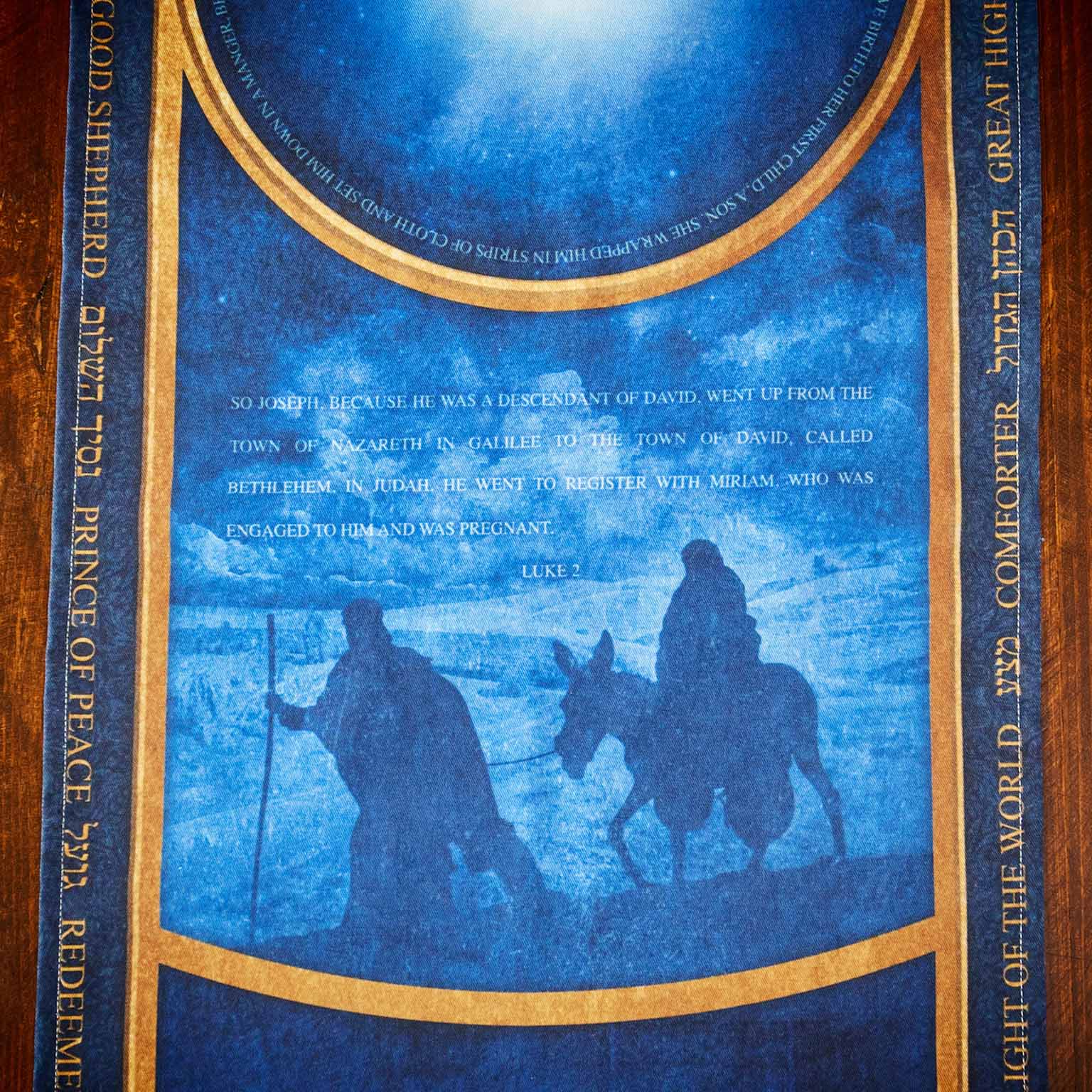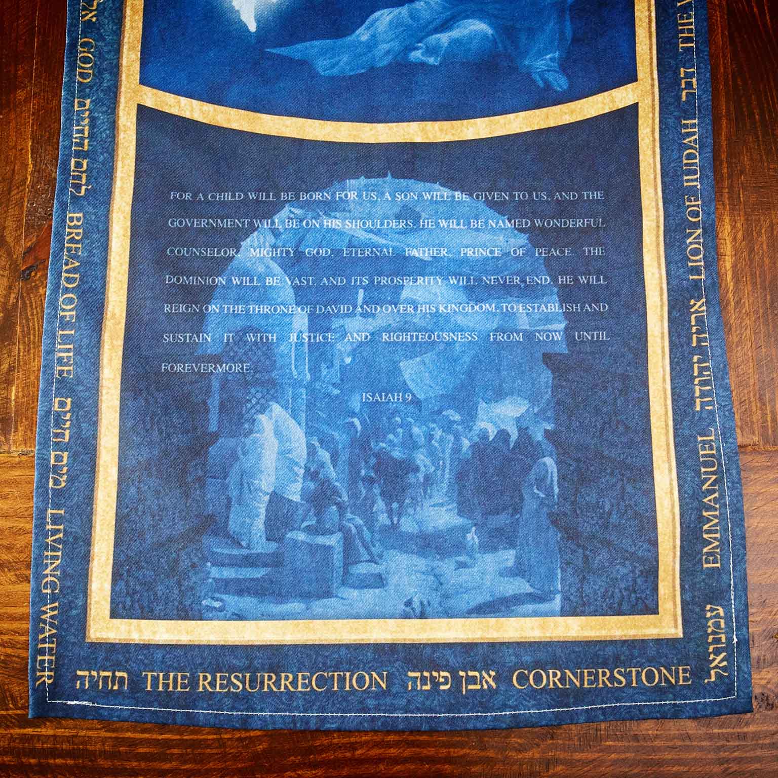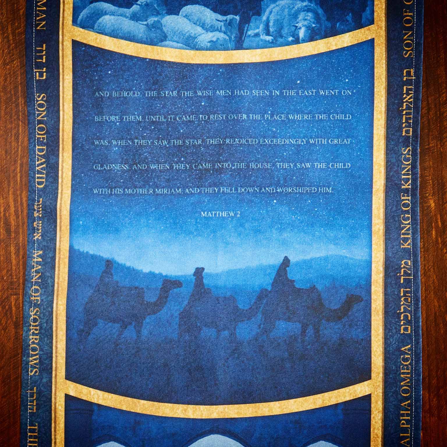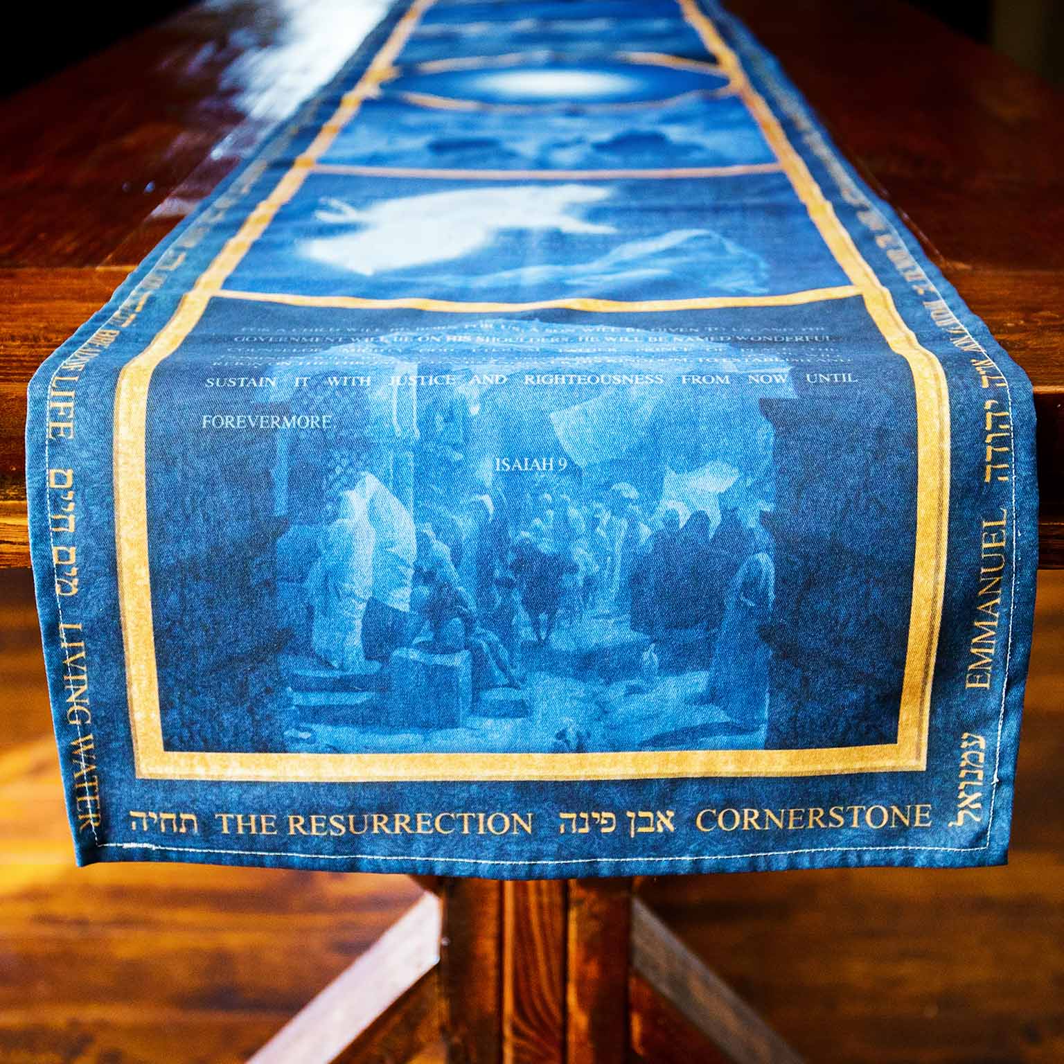 • From Isaiah's prophecy of the Coming King, to His birth in Bethlehem, to His dedication at the Temple in Jerusalem, this gorgeous table runner tells the story of the birth of Jesus through scripture and beautiful images.